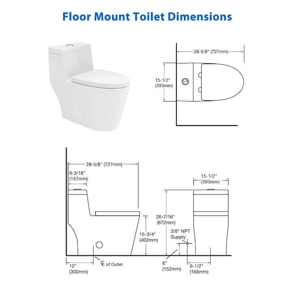 12 in. Rough-in 1-Piece 1.6/1.1 GPF Dual Flush High Efficiency Elongated Toilet in White, Seat Included