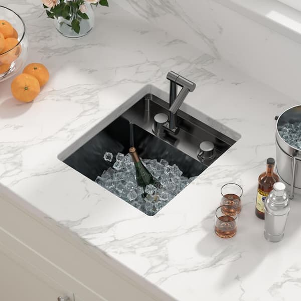 15 in. Undermount Single Bowl 16-Gauge Black Stainless Steel Workstation Kitchen Sink Under Counter Basin with Faucet