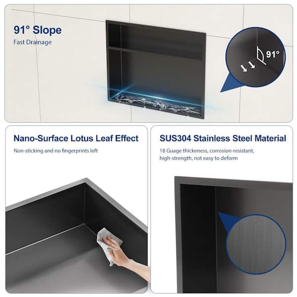 18 in. W x 4 in. H x 14 in. D Stainless Steel Shower Niche Set of 1-Piece in Matte Black Single Shelf Organizer Storage