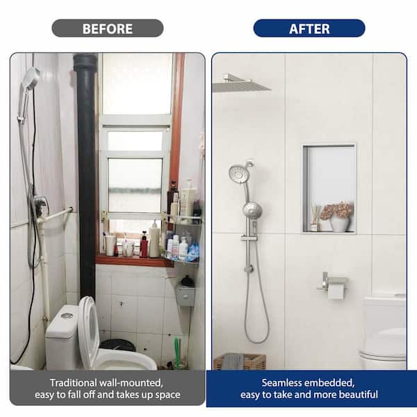 20 in. W x 3.94 in. H x 12 in. D Stainless Steel Shower Niche Set of 1- Piece in Brushed