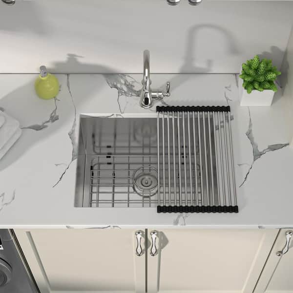 24 in. Undermount Single Bowl 16-Gauge Stainless Steel Laundry Utility Sink Kitchen Sink for Apartment with Bottom Grid