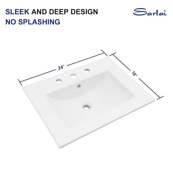 24 in. W x 18 in. D Porcelain Ceramic Drop In Single Bowl Bath Vanity Top Sink in White with 3 Faucet Holes and Overflow
