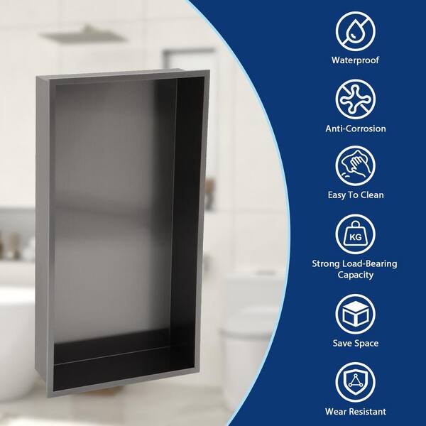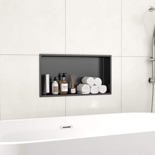 24 in. W x 4 in. H x 12 in. D Stainless Steel Shower Niche Set of 1 Piece in Matte Black Single Shelf Organizer Storage