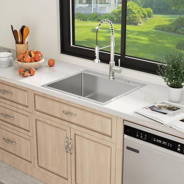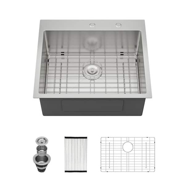 25 in. Drop-In/Topmount Single Bowl 16 Gauge Stainless Steel Round Corner Kitchen Sink with Bottom Grid