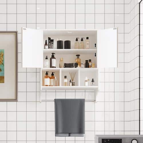 27.5 in. W x 23.8 in. D x 7.8 in. H Bathroom Storage Wall Cabinet in White