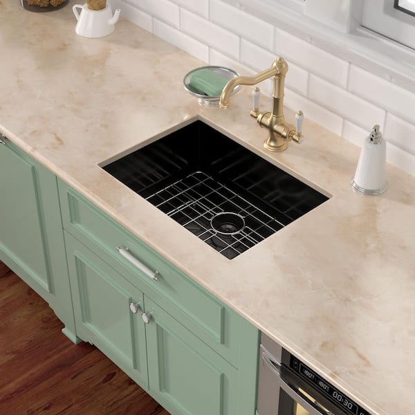 28 in. Undermount Single Bowl 18-Gauge Gunmetal Black Stainless Steel Kitchen Sink Zero Radius Corners with Bottom Grid