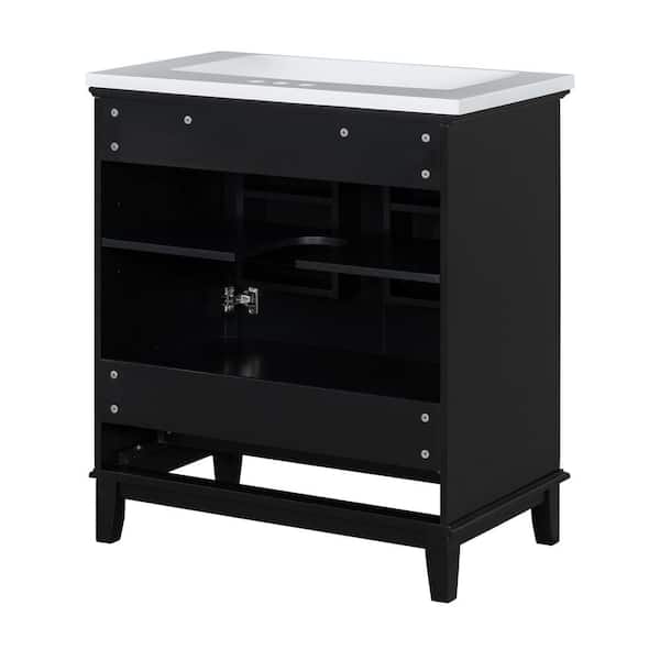 30 in. Black Freestanding Bath Vanity Cabinet with White Ceramic Single Sink Top Combo
