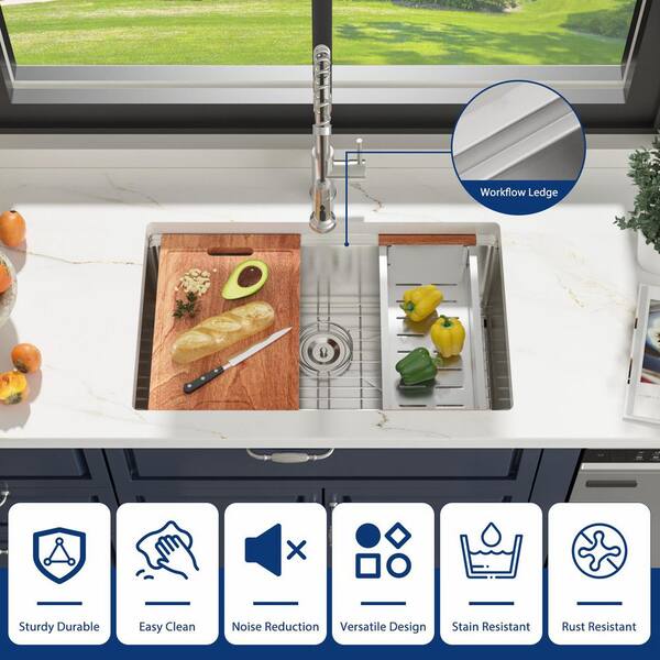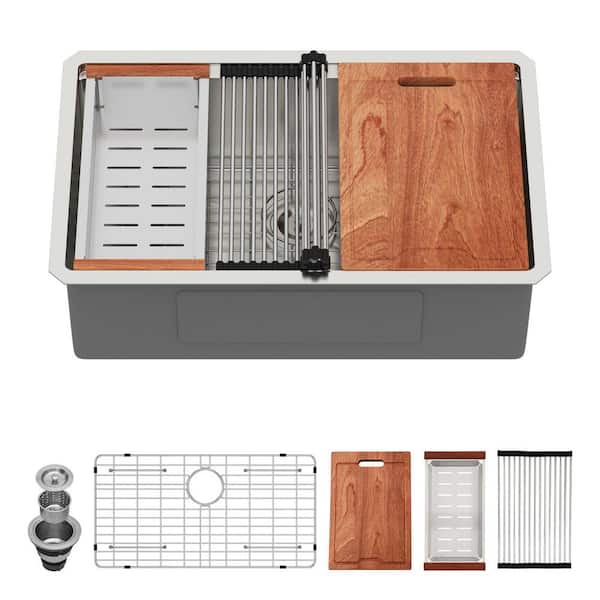 32 in. Undermount Single Bowl 18-Gauge Brushed Nickel Stainless Steel Workstation Kitchen Sink with All Accessories