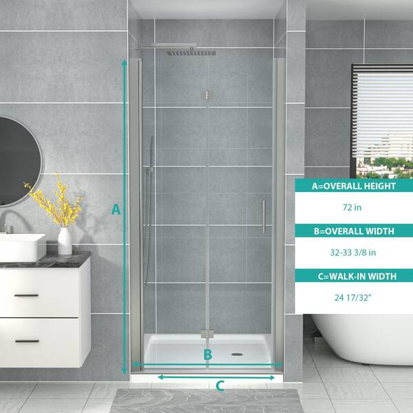 32 in. W x 72 in. H Bifold Semi-Frameless Shower Door in Brushed Nickel Finish with Clear Glass