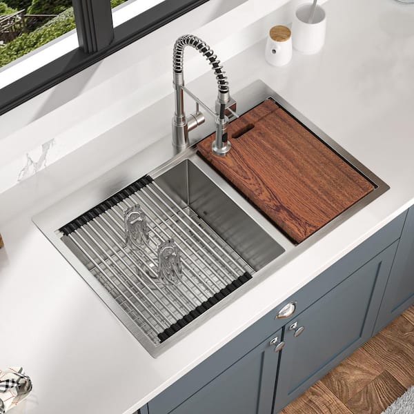 33 in. Drop-in/Topmount 60/40 Double Bowl 16-Gauge Brushed Nickel Stainless Steel Kitchen Sink with Bottom Grid