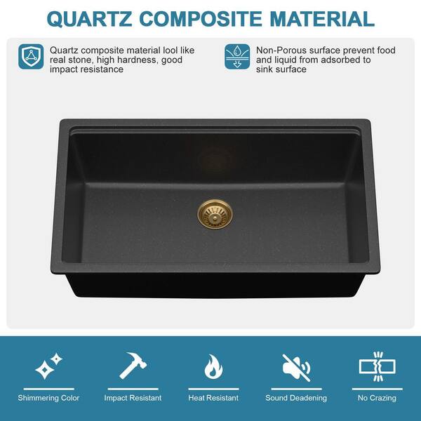 30 in. Undermount Single Bowl Workstation Black Quartz Composite Kitchen Sink Round Corner with Accessories