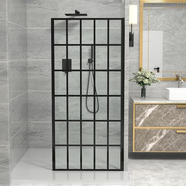 34 in. W x 72 in. H Fixed Framed Shower Door in Satin Black with Tempered Clear Glass