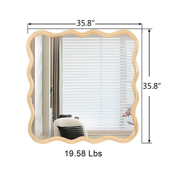 36 in. W x 36 in. H Solid Wood Wavy Square Framed Wall Mount Bathroom Vanity Mirror in Natural Wood