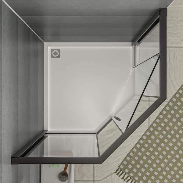 42 in. x 76 in. Neo Angle Interior Sliding Framed Corner Shower Enclosure in Matte Black with 5/16 in. Tempered Glass