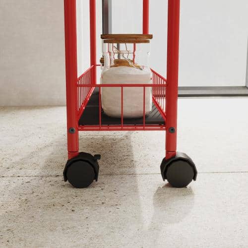 6 in. W 6-Shelf Red Metal Kitchen Car with Wheels