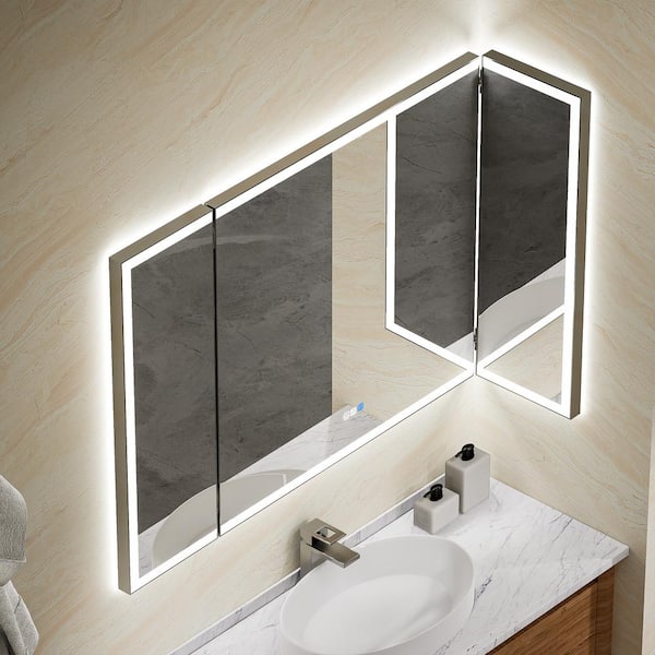 60 in. W x 36 in. H Rectangle Framed Wall Mounted Bathroom Vanity Mirror in Metal with Light and Monitor