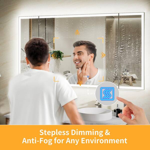 66 in. W x 36 in. H Rectangle Framed Wall Mounted Bathroom Vanity Mirror in Metal with Light and Monitor
