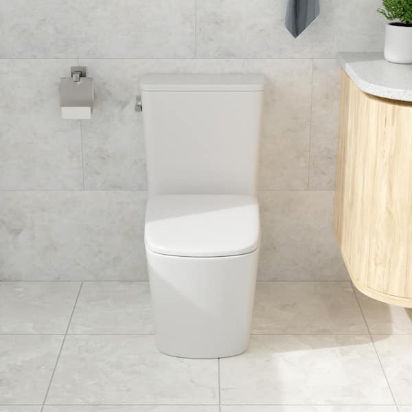 One-Piece 1.28/1.1 GPF High Efficiency Single Flush Elongated Toilet in White Slow Close Seat Included