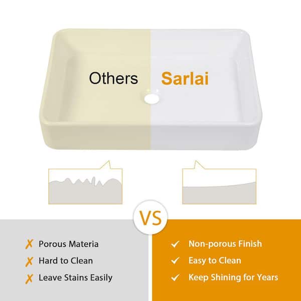 White Porcelain Ceramic Rectangular Modern Above Counter Bathroom Vessel Vanity Sink Art Basin