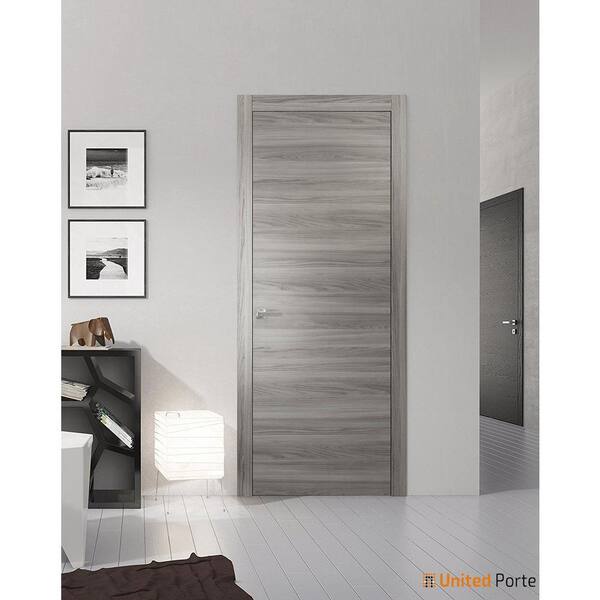 0010 28 in. x 96 in. Flush No Bore Grey Matte Finished Pine Wood Interior Door Slab with Hardware