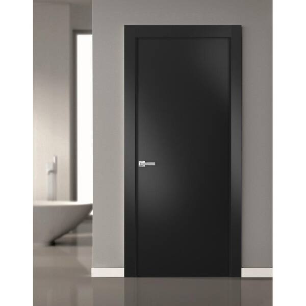 0010 42 in. x 84 in. Left-Hand/Inswing Solid Black Matte Single Prehung Interior Door with Hardware