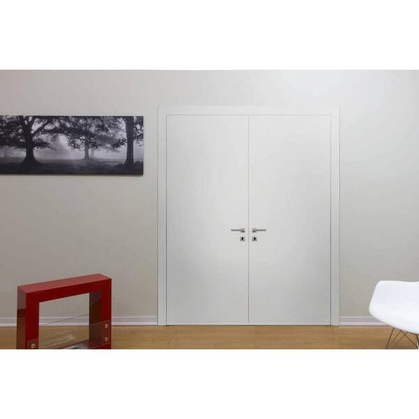 0010 84 in. x 80 in. Flush No Bore White Finished Pine Wood Interior Door Slab with French Hardware