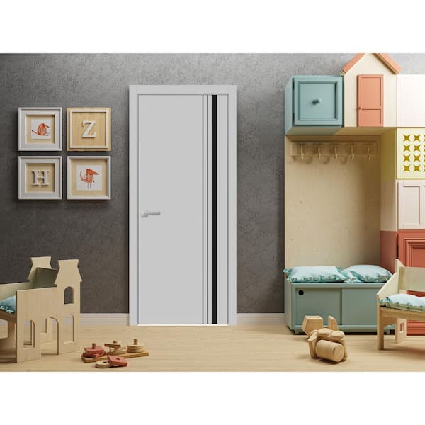 0011 28 in. x 80 in. Right-Hand/Inswing Solid Matte Grey Wood Single Prehung Interior Door with Hardware