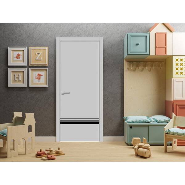 0012 32 in. x 84 in. Right-Hand/Inswing Solid Matte Grey Wood Single Prehung Interior Door with Hardware