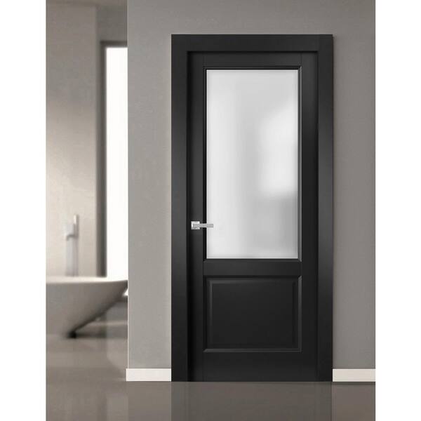 1422 32 in. x 80 in. Right-Hand/Inswing Solid Frosted Glass Black Matte Single Prehung Interior Door with Hardware