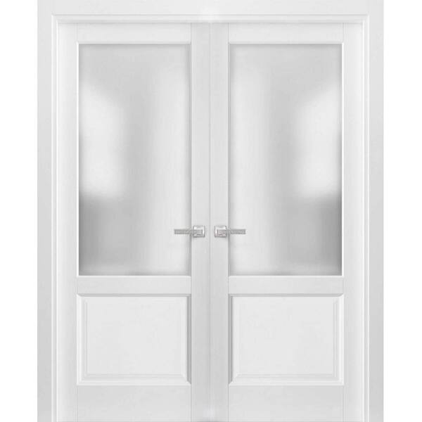 1422 72 in. x 80 in. Universal Handling Frosted Glass Solid Core White Finished Pine Wood Interior Door Slab