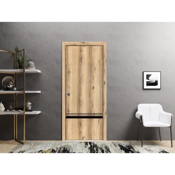 18 in. x 80 in. 1 Panel Oak Color Finished Solid Wood with Honeycomb Sliding Door with Hardware