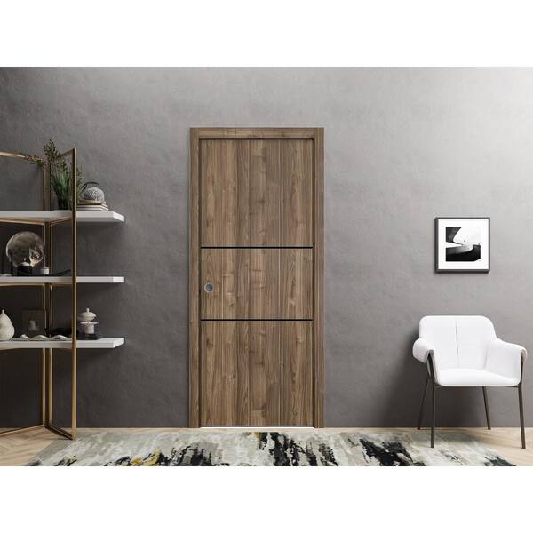 18 in. x 80 in. 1 Panel Walnut Finished Solid Wood with Honeycomb Sliding Door with Hardware