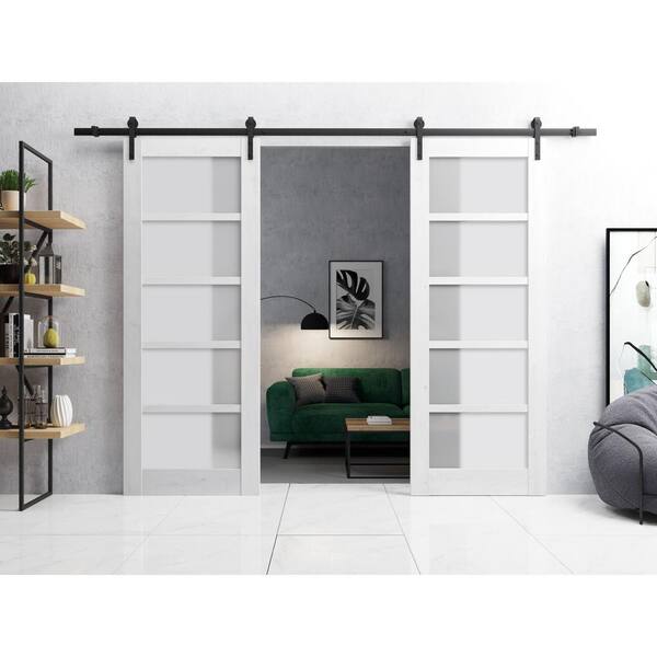 18 in. x 80 in. 2 Panel Frosted Glass Nordic White Solid MDF Sliding Barn Door with Hardware Kit