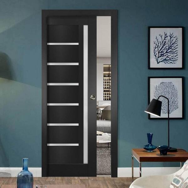 18 in. x 84 in. 1 Panel Black Matte Finished MDF Sliding Door with Hardware