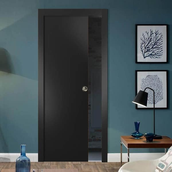 18 in. x 84 in. 1 Panel Black Matte Finished Solid Wood with Honeycomb Sliding Door with Hardware