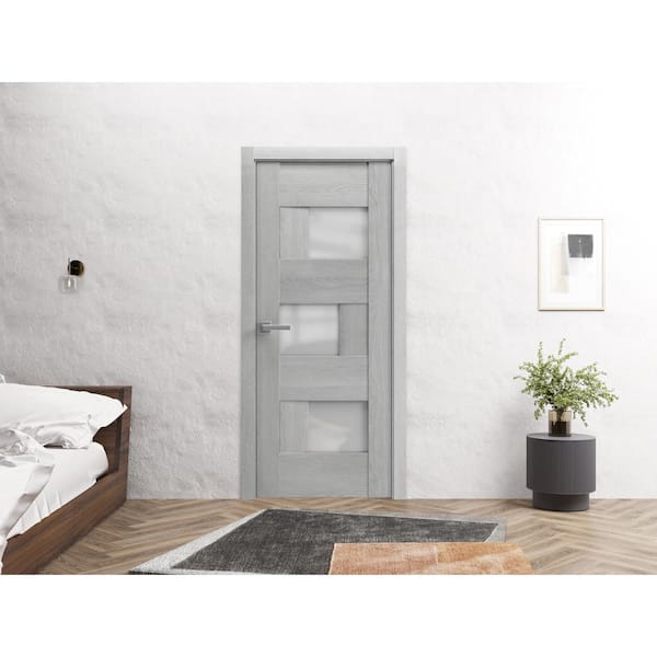 18 in. x 84 in. 1 Panel Light Grey Oak Color Finished Solid MDF Sliding Door with Hardware