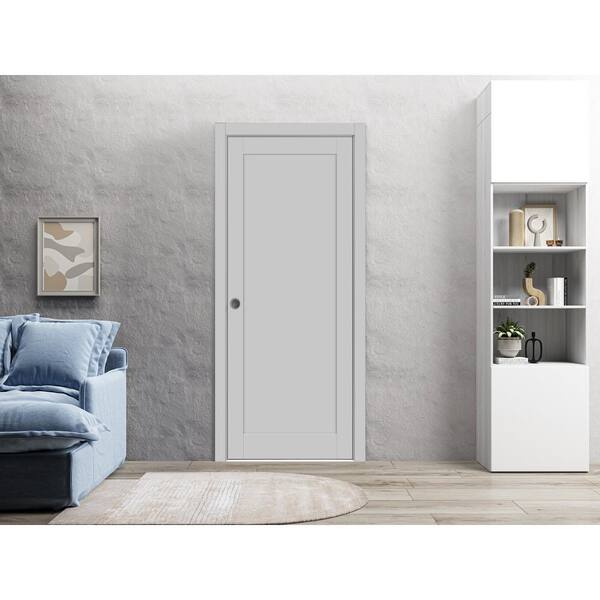 18 in. x 84 in. 1 Panel Matte Grey Finished MDF Sliding Door with Hardware