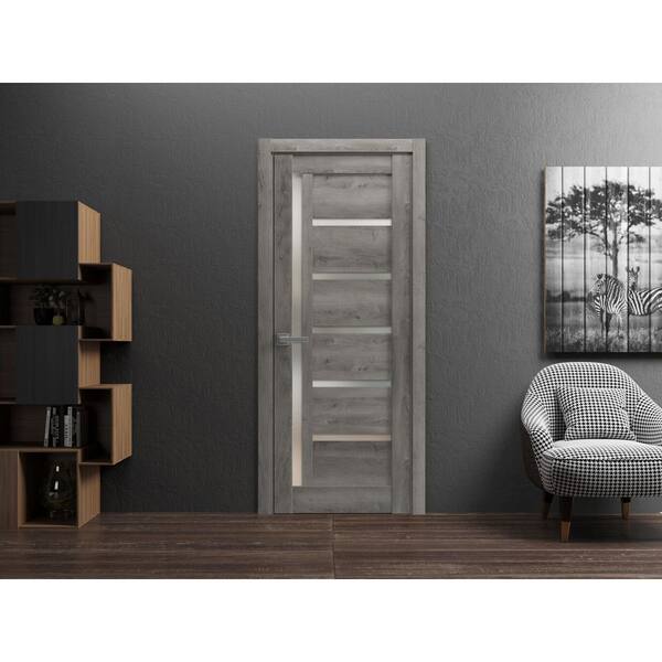 18 in. x 84 in. 1 Panel Nebraska Grey Finished MDF Sliding Door with Hardware