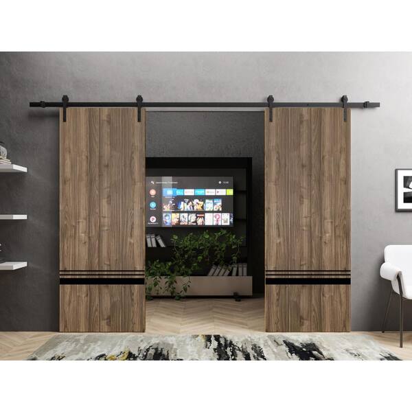 18 in. x 84 in. 2 Panel Walnut Solid Wood with Honeycomb MDF Sliding Barn Door with Hardware Kit