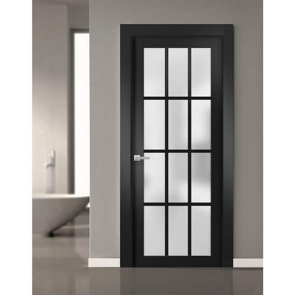 18 in. x 96 in. 1 Panel Black Matte Finished Solid Wood Sliding Door with Hardware