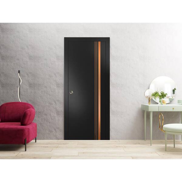 18 in. x 96 in. 1 Panel Black Matte Finished Solid Wood with Honeycomb Sliding Door with Hardware
