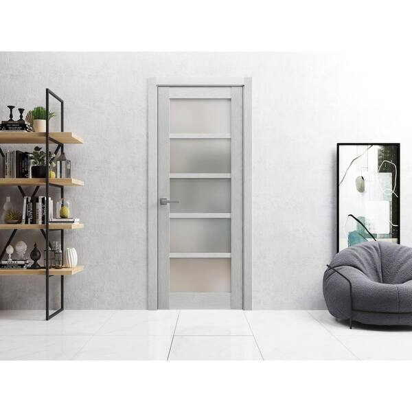 18 in. x 96 in. 1 Panel Light Grey Oak Finished Solid MDF Sliding Door with Hardware