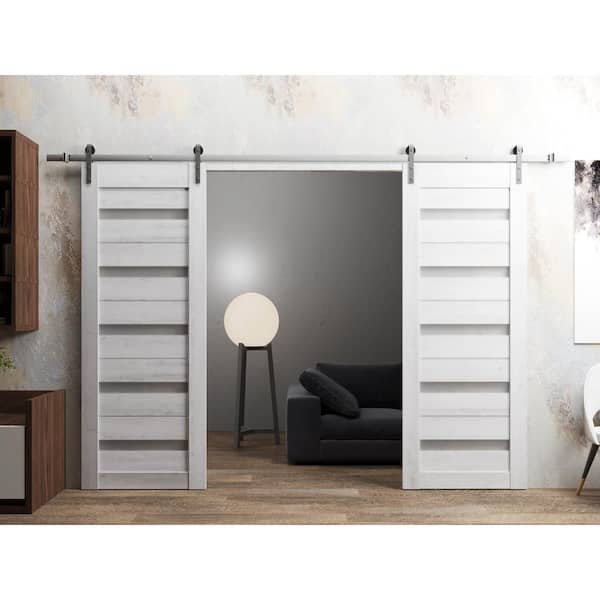 18 in. x 96 in. 2 Panel Frosted Glass Nordic White Solid MDF Sliding Barn Door with Hardware Kit