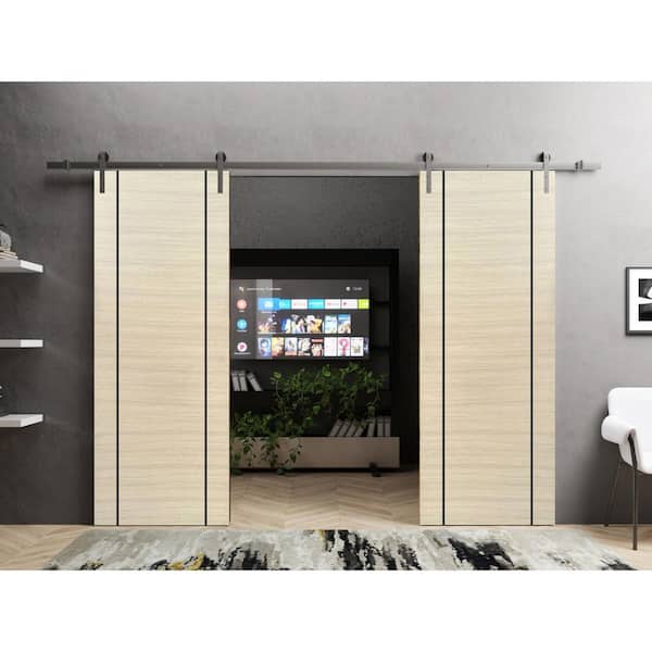 18 in. x 96 in. 2 Panel Natural Veneer Solid Wood with Honeycomb Sliding Barn Door with Hardware Kit
