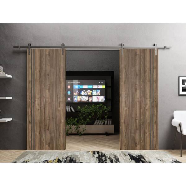 18 in. x 96 in. 2 Panel Walnut Solid Wood with Honeycomb Sliding Barn Door with Hardware Kit