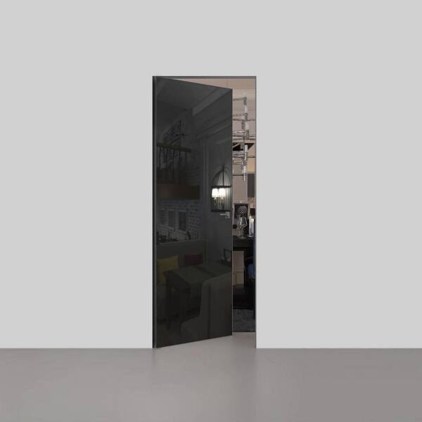 18 in. x 96 in. Unassembled Right-Hand/Inswing Wood Graphite Color Flush Mount Hidden Door with Silver Hinge Finish