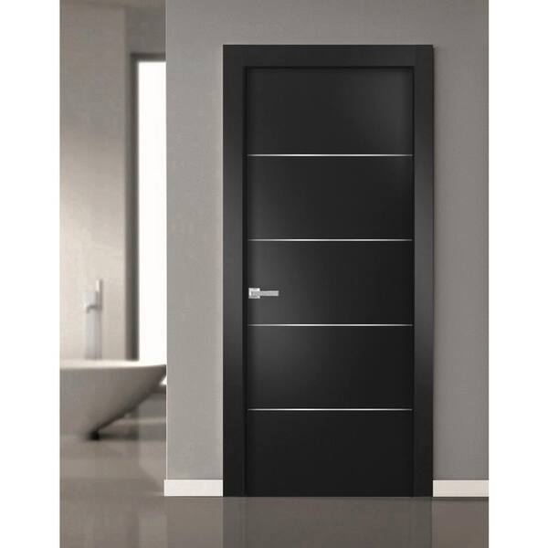 20 18 in. x 84 in. Right-Hand/Inswing Solid Wood Black Matte Single Prehung Interior Door with Hardware