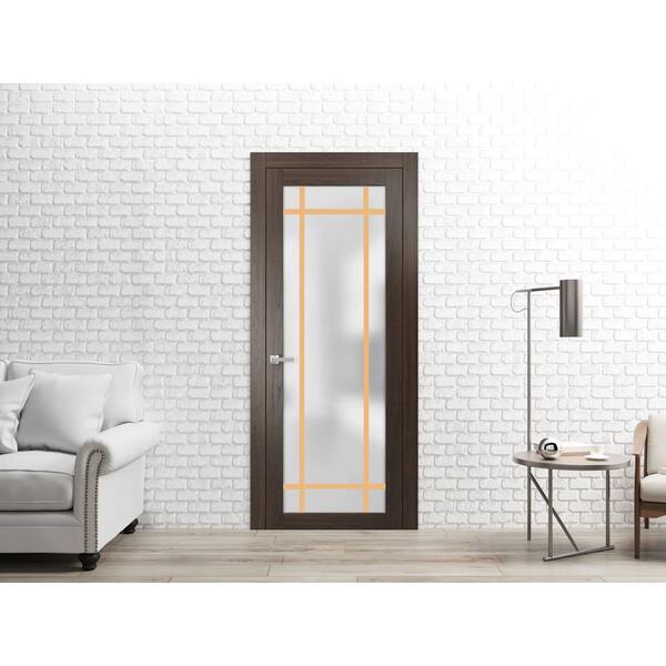 2113 42 in. x 80 in. Left-Hand/Inswing Solid Frosted Glass Chocolate Ash Single Prehung Interior Door with Hardware