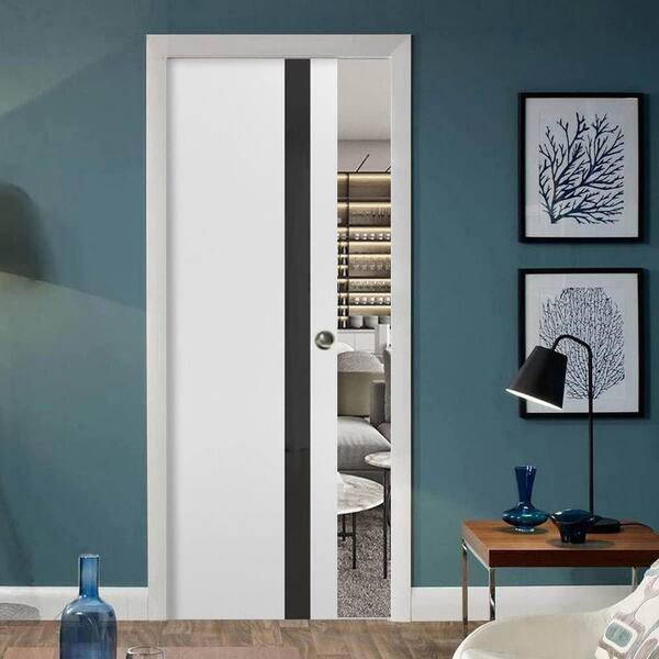 24 in. x 80 in. 1 Panel White Finished Solid Wood Sliding Door with Hardware