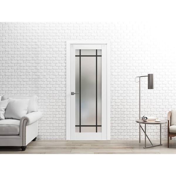 24 in. x 80 in. 1 Panel White Finished Solid Wood Sliding Door with Hardware